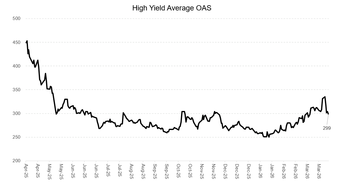 HY primary was quiet. March closed as the lightest month for HY supply since late 2025 and the lowest March total in three years. Four consecutive weeks of outflows above $1 billion each.