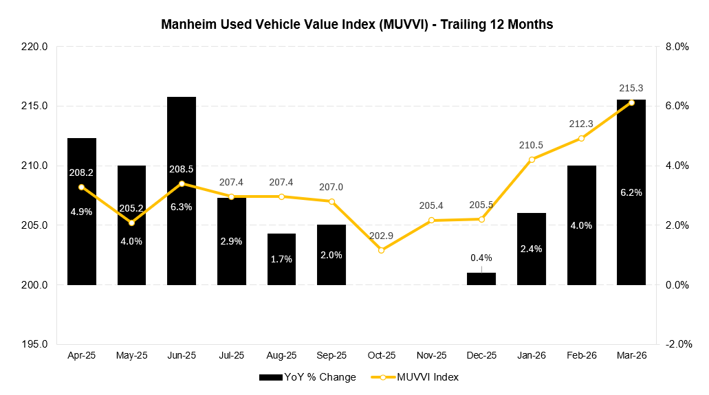 Second, the used car price channel. Crude up meaningfully pushes input costs higher on new vehicles, which supports used vehicle residuals and therefore Manheim. The March Manheim rental risk index was already up 6.2% y/y, the best since July 2023. Iran escalated that trend. For Avis, higher residuals flow through DPU, which is the single biggest line item on the rental car P&L. A sustained Manheim tailwind matters more than the rental day volume.