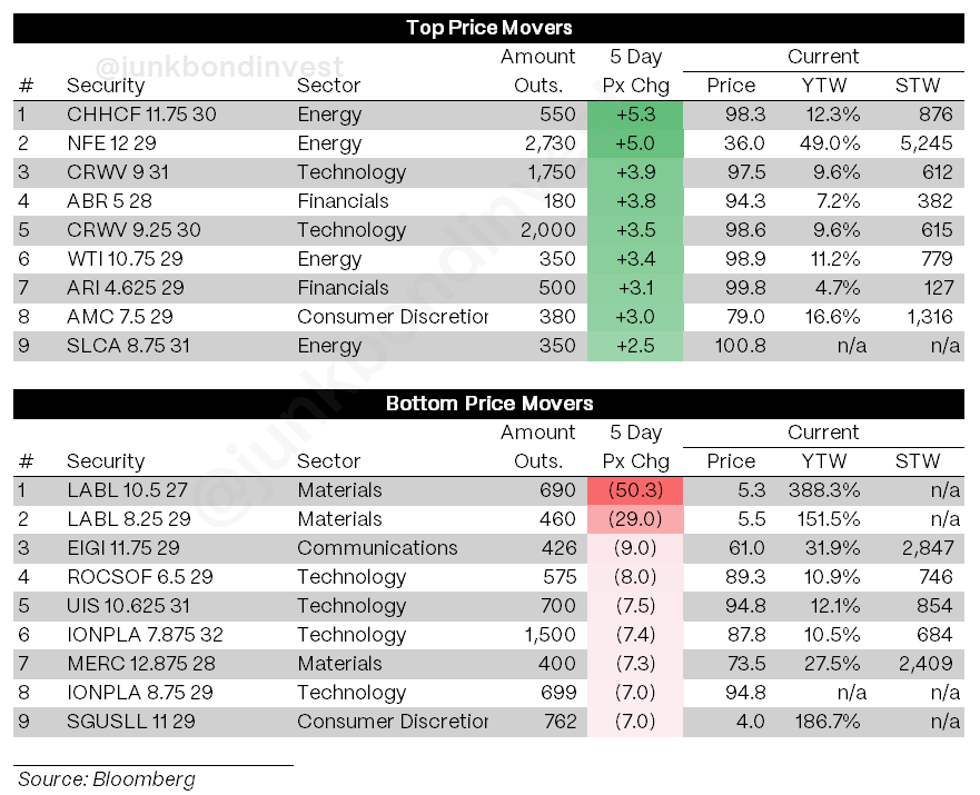 Elsewhere, energy stayed firm on geopolitical premium. Mortgage originators were weak after disappointing results from one large player. Multi-Color filed prepack after entering an RSA with 70% of first-lien lenders, cutting $3.9 billion of debt. The stress in lower-quality industrials is real. But it is not limited to public markets.