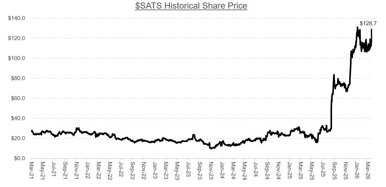 SpaceX is reportedly targeting a $2 trillion-plus valuation in an IPO that could happen in weeks. At those levels, EchoStar’s stake is worth over $40 billion. The stock trades at a ~$37 billion market cap. So are you buying SpaceX at a discount through EchoStar, or has the market already figured that out?