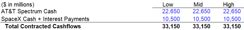 Combined: $33.2 billion of contracted, signed, committed cash. Not contingent on any valuation, not dependent on finding a buyer, not subject to negotiation. The only remaining step on the AT&T deal is FCC sign-off, which is widely expected given the current regulatory environment.