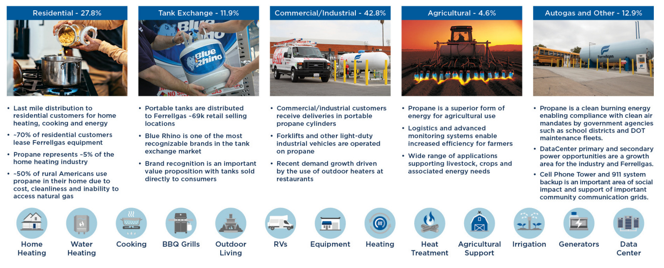 Meanwhile, the propane distribution business remains exactly what it’s always been. Boring, predictable, and cash-generative. Demand tracks long-term averages. Degree days drive seasonal swings. Consolidation among regional distributors continues at a steady clip. Ferrellgas sits as the 2nd-largest player in the U.S. market, benefiting from scale, logistics reach, and brand equity through Blue Rhino.