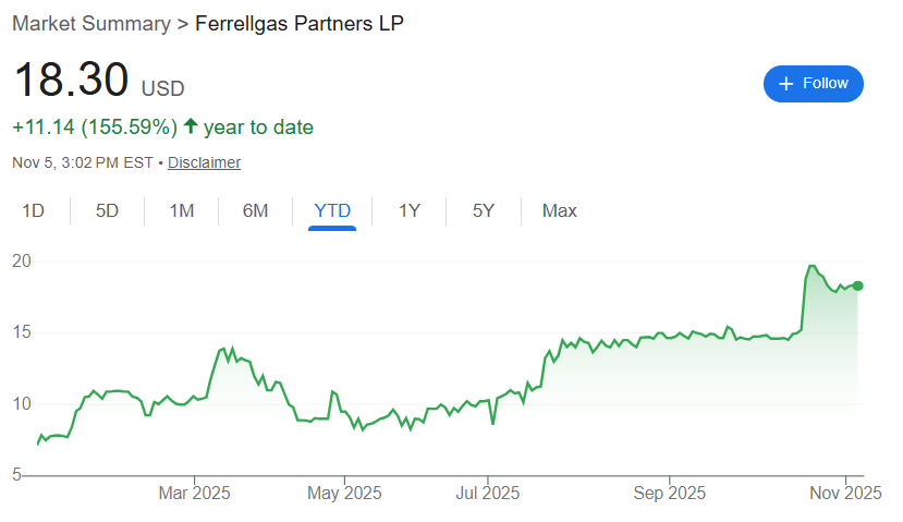 I wrote about Ferrellgas a little over a year ago. The idea was simple: a steady propane business trapped in a messy capital structure that needed a refinancing to unlock value. The refi piece somewhat played out but not exactly and the path wasn’t clean. Operations were mixed, the litigation dragged on longer than anyone wanted, and the equity sat dead for months before suddenly ripping higher.