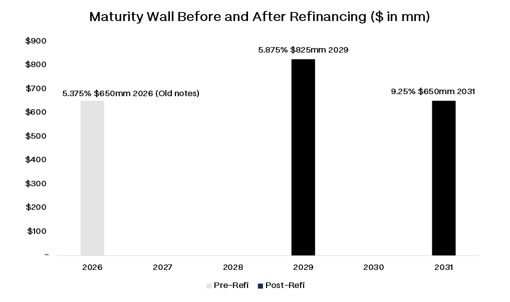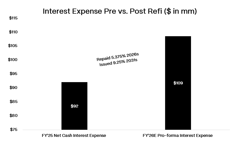 The problem? They’re now paying 9.25% on $650mm of debt vs. 5.375% previously. Interest expense just went up significantly, which will pressure FCF and limit how fast they can deleverage.