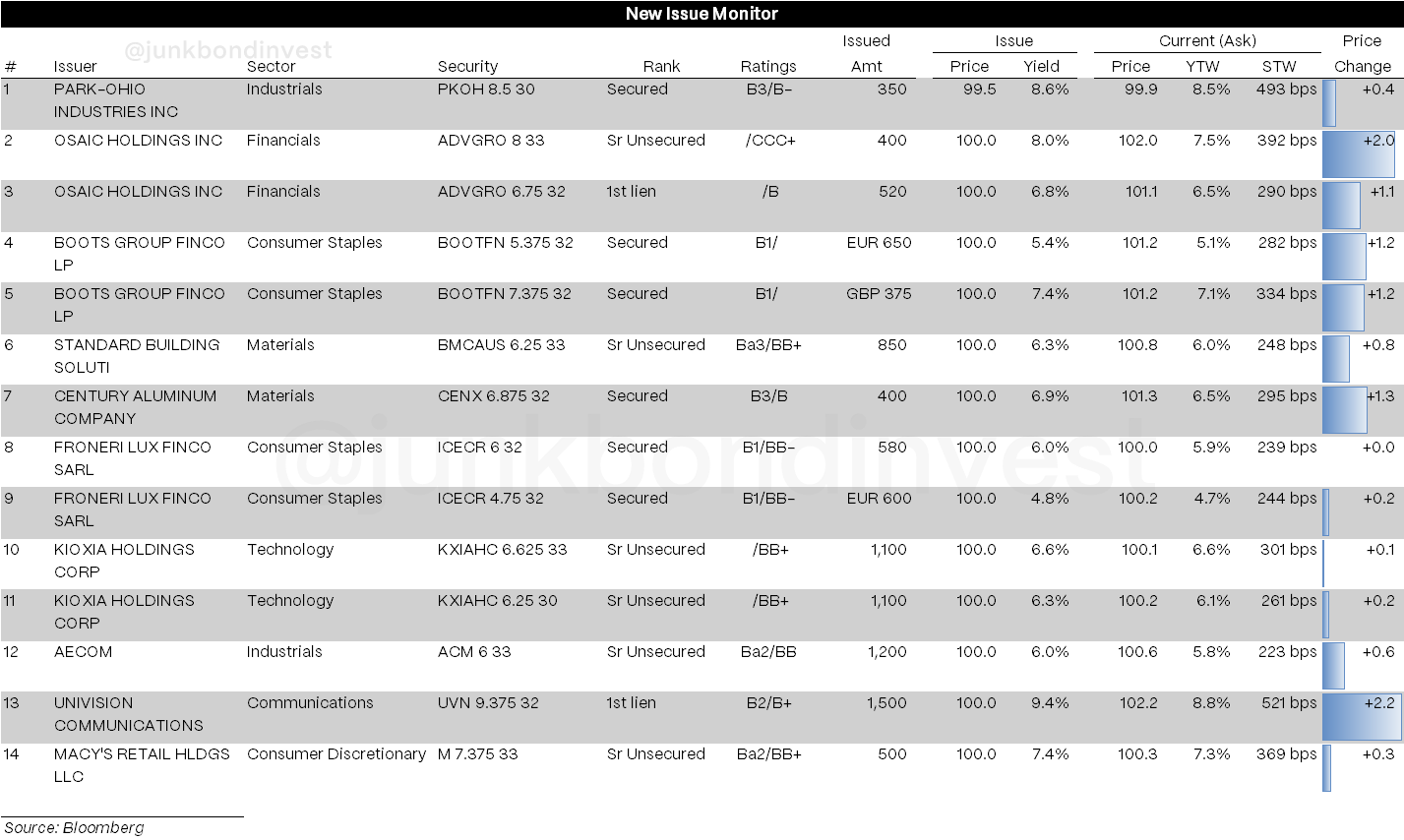 The primary market told the real story. Nine deals totaling $8.5 billion cleared with ease, bringing July’s issuance to over $20 billion. When Standard Industries can price $850 million at 6.25%, while Froneri executes a massive dividend deal at just 6.00%, you know demand remains robust despite recent jitters.