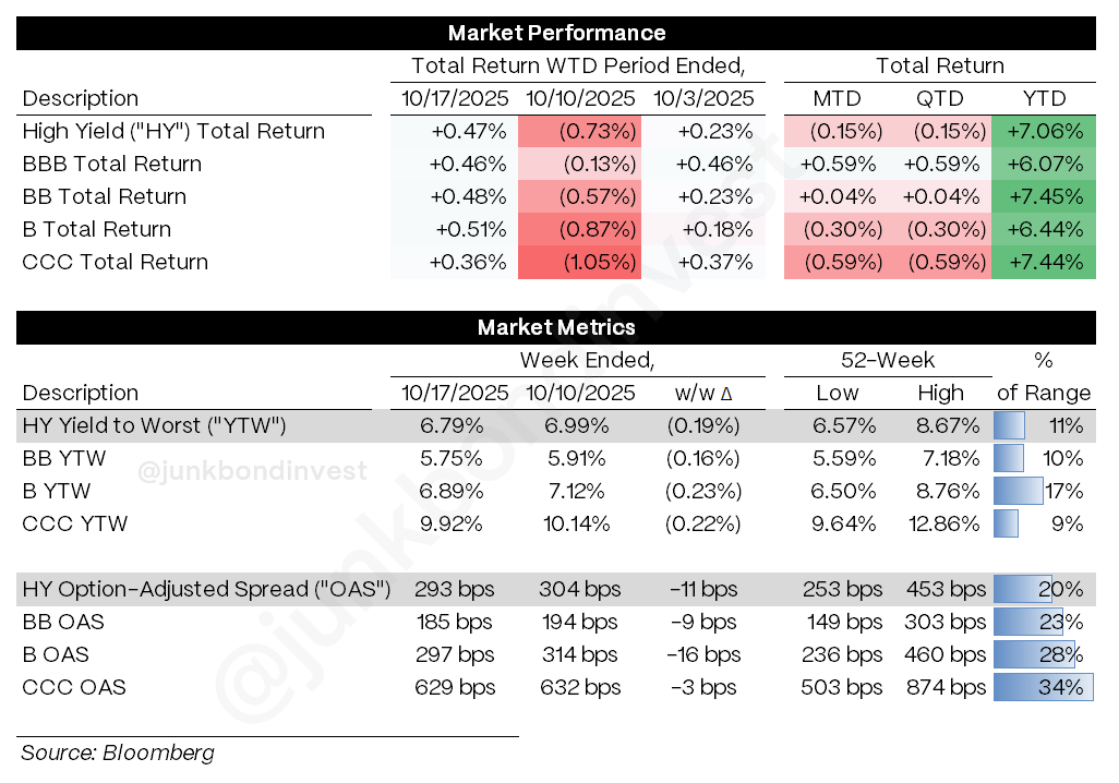 High Yield Market Weekly Minutes: Regional Banks Panic, High Yield Yawns...Then Rallies (October 20, 2025)