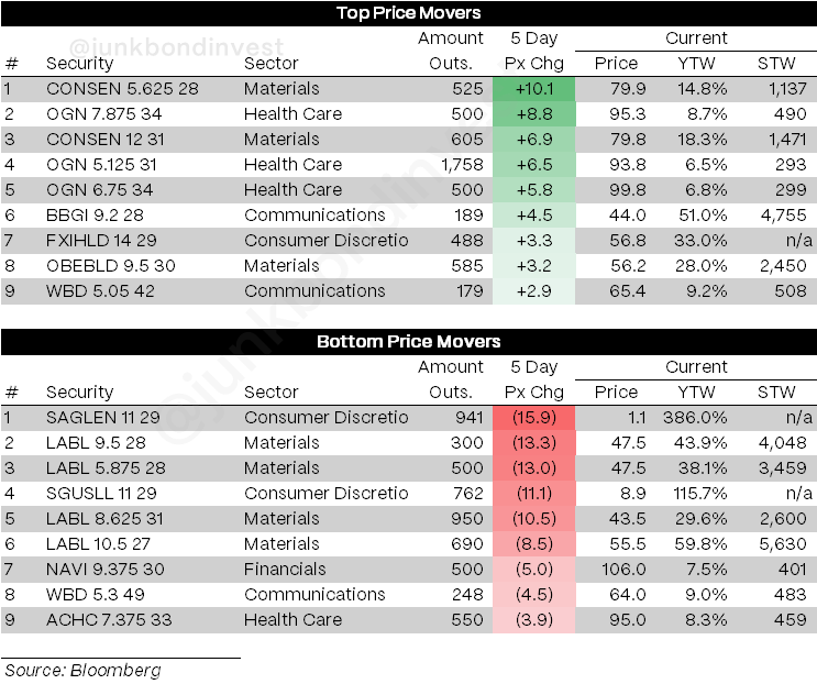Financials saw headline-driven volatility around the proposed 10% credit card APR cap. Consumer finance was hit hardest early, with bonds off a few points, but both recovered as investors discounted the legislative odds. The sector ended firmer than the initial shock implied.