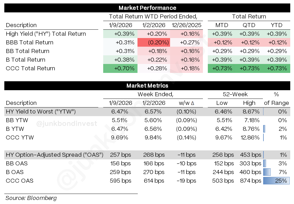 High Yield Market Weekly Minutes: CCCs Rip Higher as 2026 Kicks Off (January 11, 2026)