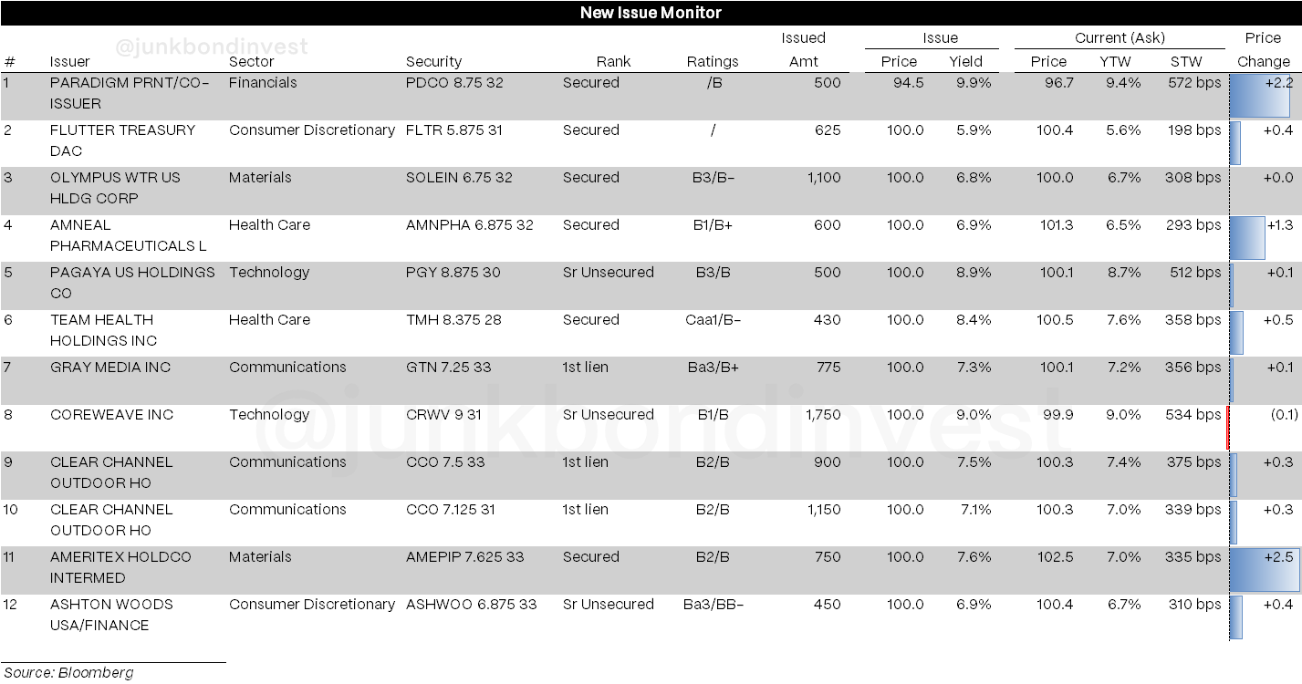 The refinancing wave shows no signs of slowing. With companies like Team Health, CoreWeave, and Gray Media successfully addressing their maturity profiles, and conditions remaining favorable despite recent rate volatility, issuers continue taking advantage of receptive markets.