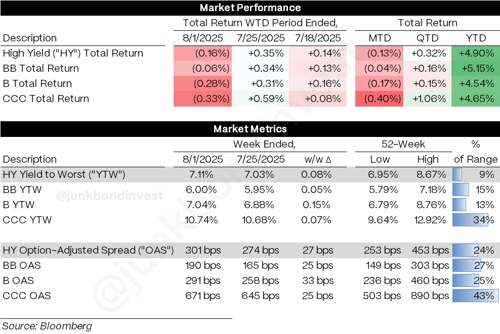 High Yield Market Weekly: The Summer Selloff Finally Arrives...As Job Market Cracks & Fed Stays Stubborn (August 4, 2025)