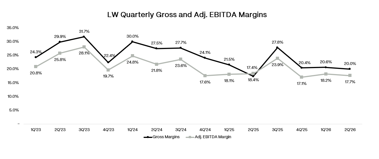 Fiscal 1Q’25 and 2Q’25 were the “weak execution” phase and Adj. EBITDA was roughly $300mm which is what it looks like when you’re still absorbing disruption, fighting to normalize service, and using commercial actions to stop the bleeding. 3Q’25 was the bounce, gross margin jumped to 27.8% and Adj. EBITDA to $364mm. But it did not hold. 4Q’25 rolled back over, gross margin fell to 20.4% and Adj. EBITDA to under $300mm, reinforcing that this is not a smooth normalization story.