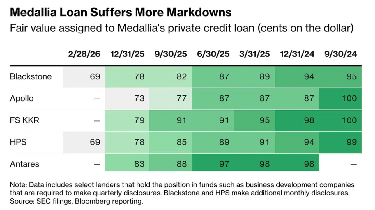 Think about what marking down actually means in this context. It’s not an accounting entry. If NAV goes down, more investors head for the exit, the fund sells assets into a market that won’t pay par. Nobody in that seat marks down if they can avoid it.