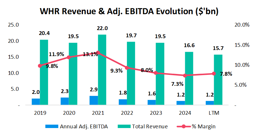 But as the pandemic effect faded, the brutal reality returned. By 2023, the cycle turned. Volumes softened. Promotions returned. Imports surged ahead of tariff changes. Demand weakened, especially in North America - still Whirlpool’s most important region by far.